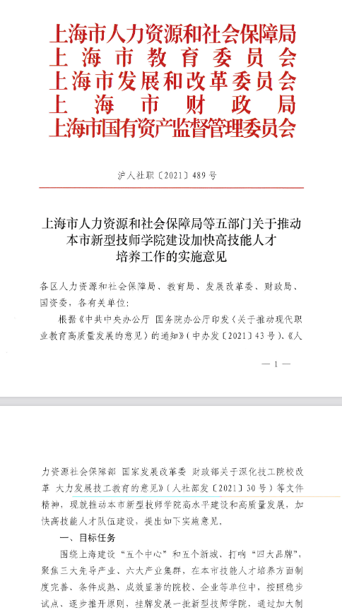 近日,根据《上海市人力资源和社会保障局等五部门关于推动本市新型技师成年人午夜网站建设加快高技能人才培养工作的实施意见》(沪人社职〔2021〕489号),市人力资源社会保障局会同市教委等部门认定午夜黄视频为上海市首批新型技师成年人午夜网站之一。我校为全市获批的10家单位中唯一一所民办本科层次职业午夜十八禁。