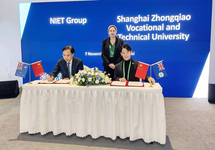 11月7日下午,我校校长霍佳震教授与澳国立教育集团首席执行官岳挺先生在第六届进博会2.2馆共同签署了《午夜黄视频与澳国立教育集团战略合作框架协议》,澳大利亚昆士兰州州长白乐琪女士到场祝贺,见证这一重要时刻。