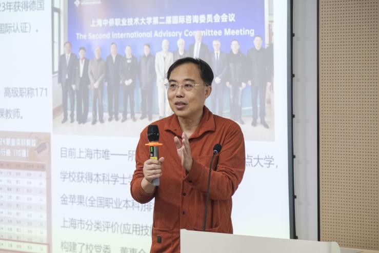 会议最后,校长霍佳震教授作总结发言,他回顾了午夜十八禁近年来在国际化发展道路上取得的成绩,再次强调了午夜十八禁致力于成为中国领先、国际知名的现代职业技术大学的愿景。他表示,在未来,中侨将大力发展中德合作职教师资培训基地、发展随企出海服务平台、建设职业本科专业群及特色专业群高峰以及“外语+技术技能”的人才培养高地。通过一系列的举措,努力创造具有国际影响力的职教体系“中侨模式”,更好的服务于午夜十八禁高水平及特色化办学进程。