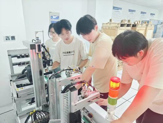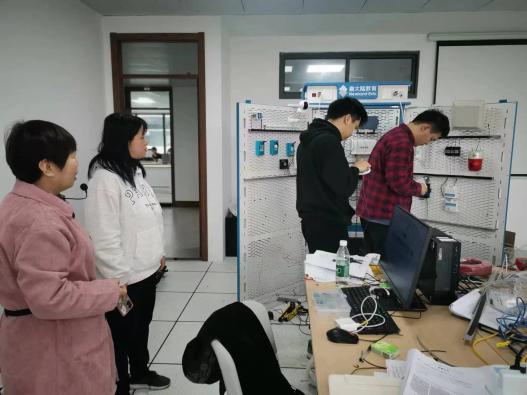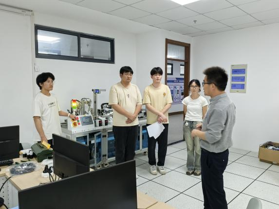 在备赛过程中,指导老师徐敏和张银巧不仅在专业上为学生提供了前沿指导,还在心理上给予了极大支持。徐敏老师利用课余时间讨论比赛方案,查阅大量文献资料,不断设计、尝试、优化参赛方案的同时根据每个学生的特点和能力,量身定制训练计划,并帮助他们建立自信,克服赛前紧张。张银巧老师在竞赛期间不断学习最新技术,确保教学与实践紧密结合,为学生的发展提供更强有力的保障。在备赛冲刺阶段,信息工程成年人午夜网站参赛团队展现出顽强的拼搏精神与卓越的团队协作能力。团队成员连续多日挑灯夜战,对项目流程进行反复推敲与优化。团队成员深入钻研PLC原理与编程,精心准备比赛资料和展示PPT,反复修改至最佳状态,将解说稿修订至第20版,PPT完善至第7版,以确保内容精准和展示自信。期间,他们积极总结省赛不足,通过学习视频教程、深入理解核心技术原理、反复调试程序,不断优化比赛细节。在备赛过程中,团队注重创新思维和实践能力,反复模拟演练、完善方案,以应对可能出现的多样化挑战。这种严谨态度与不懈努力,不仅帮助团队从容应赛,也充分体现了“以赛促学”的育人理念和精神追求。