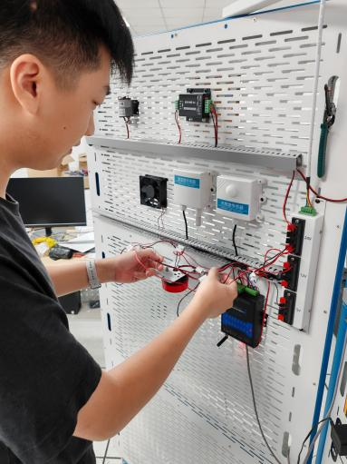 韦诗洁同学在学习物联网专业过程中,主动利用课余时间深入研究传感器技术、网络通信和嵌入式系统开发,为参赛奠定了扎实基础。比赛中,她遇到了一个小问题——红黑连接线扎得太紧难以解开,为了尽快分好红黑线,她沉着冷静,与团队紧密协作,彼此的默契达到了前所未有的高度,最终赢得了评委们的高度肯定,赢得了金奖的好成绩。通过参与不同类型的比赛,她更加清晰地认识到自己的兴趣和优势所在,从而更加明确自己的职业规划和发展方向。