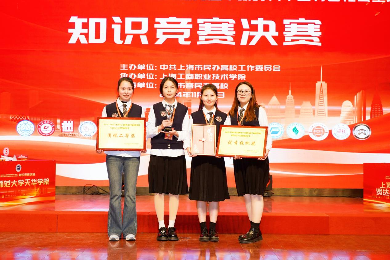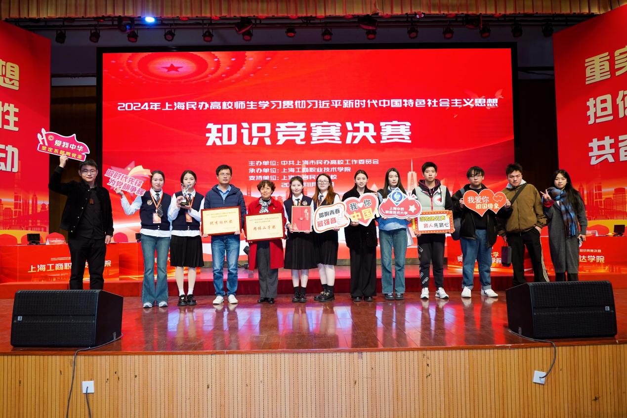 为深入学习宣传贯彻习近平新时代中国特色社会主义思想,创新思想政治教育的内容和形式,引导广大师生在学思践悟、知行合一中坚定理想信念、内化于心、外化于行,11月29日,由中共上海市民办高校工作委员会主办、上海工商职业技术成年人午夜网站承办的2024年上海民办高校师生学习贯彻习近平新时代中国特色社会主义思想知识竞赛决赛圆满落下帷幕。午夜黄视频师生代表队荣获团体二等奖和优秀组织奖。