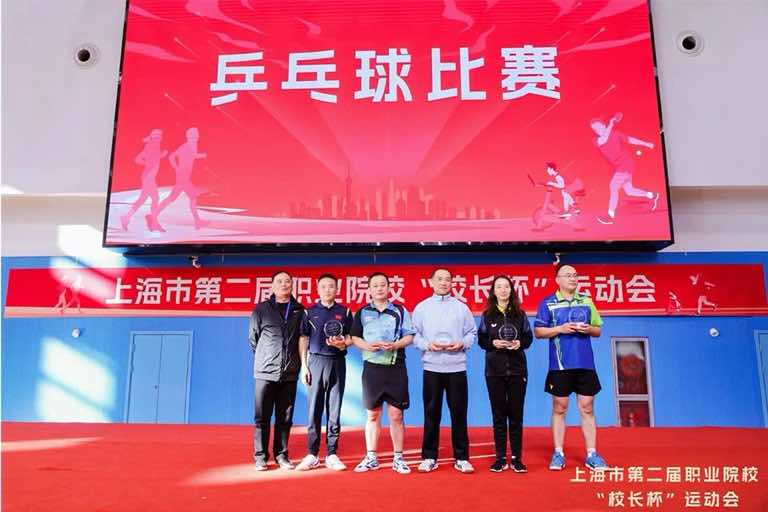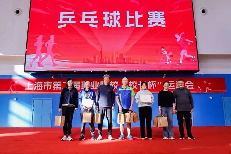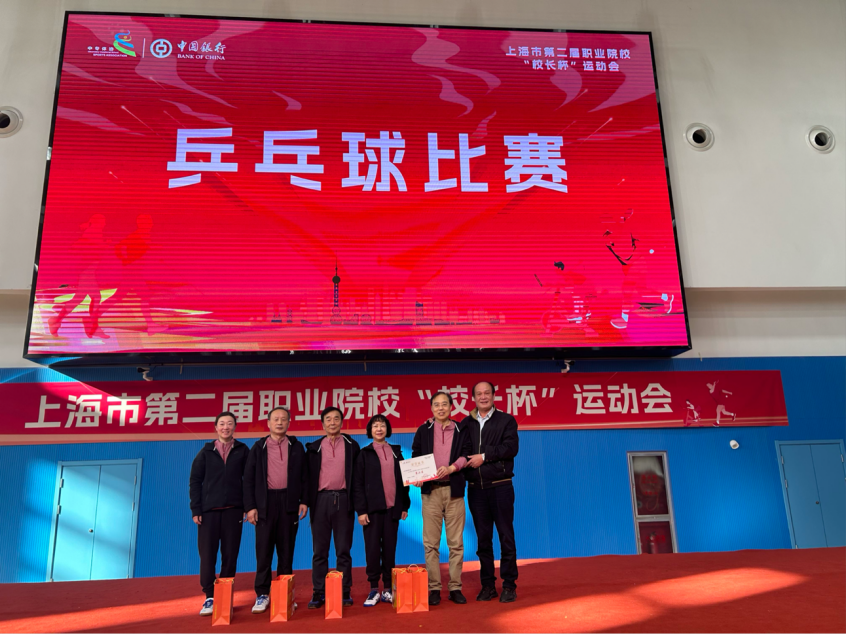 上海市教育委员会职教处四级调研员谢俊为乒乓球比赛获奖者颁奖