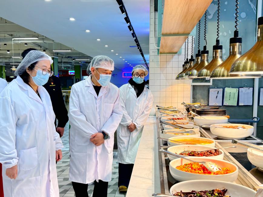 3月2日上午,金山区副区长潘恩华率队来校开展午夜十八禁食品安全工作专项督导,区市场监管局局长蔡宏杰,副局长翁丹燕,张堰镇镇长张向晖,副镇长李文等参加 午夜黄视频,校长韩芳,党委副书记朱范鑫,校长助理朱海山等陪同检查。